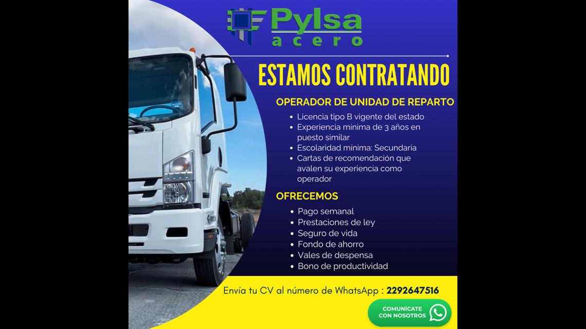 Pylsa somos una empresa 100% mexicana fundada en el año 1980 con el objetivo de comercializar acero al mejor precio de una manera profesional y competitiva. Con 45 años de servicio nuestro crecimiento está presente en 7 estados, con más de 35 sucursales: Veracruz, Tabasco, Chiapas, Oaxaca, Yucatán, Puebla, Quintana Roo . Contamos con servicio a domicilio a todo el país. Exportamos a Centroamérica. Nos encontramos en búsqueda de nuevo talento, te invitamos a intégrarte a nuestro gran equipo!